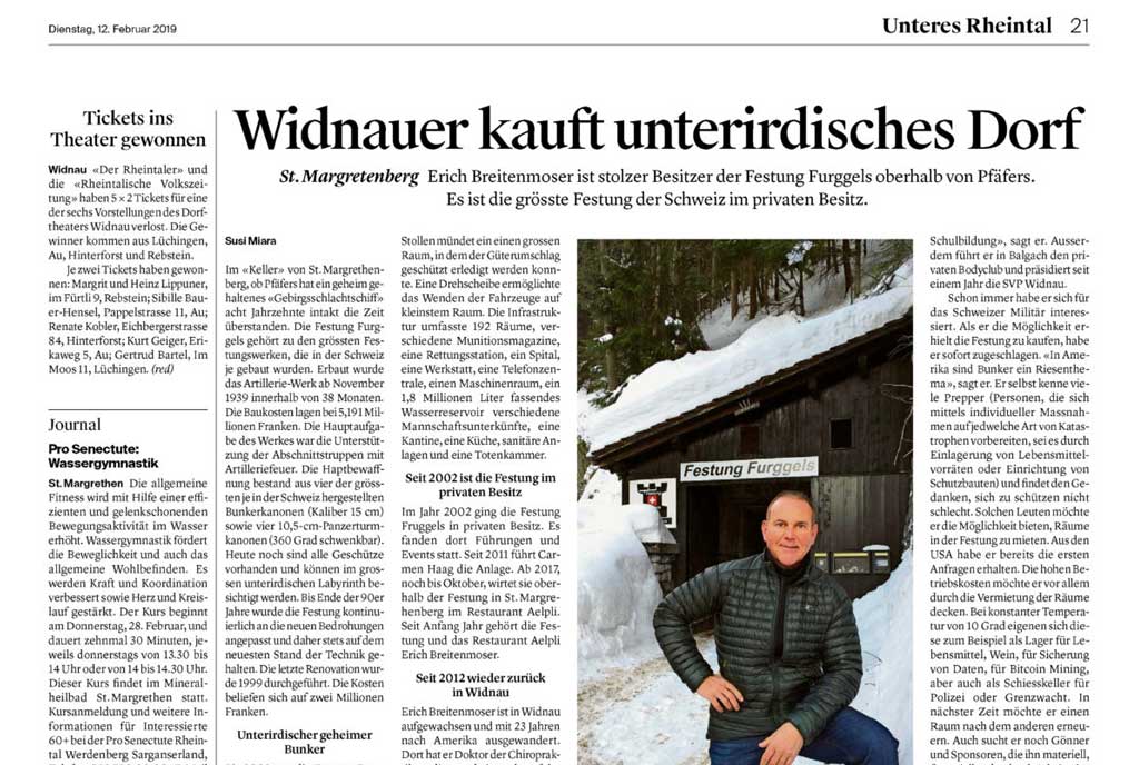 Report on the new owner of Fortress Furggels and the diverse usage possibilities of the installation.